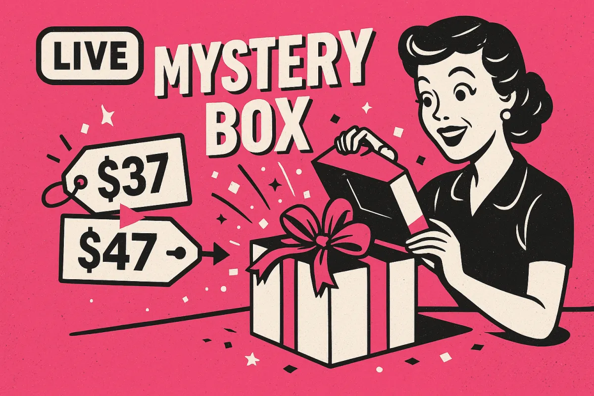 Reveal Price: once the box opens live, the price ticks up—urgency that converts.
