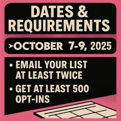 Promo Window: Sept. 29th-Oct. 6th, 2025 (email your list at least twice; we provide everything)